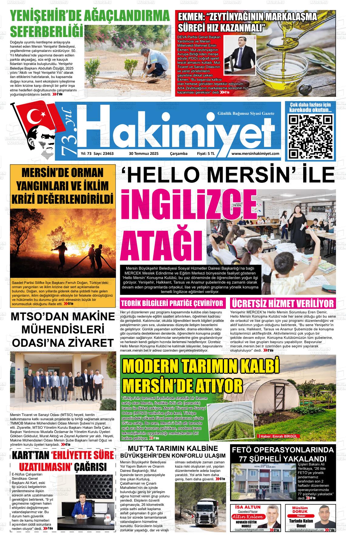 Mersİn Yerel Gazeteleri 14 Ocak 2026, Çarşamba Günü Manşeti